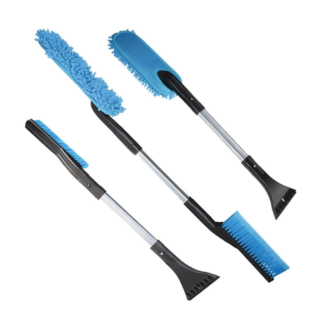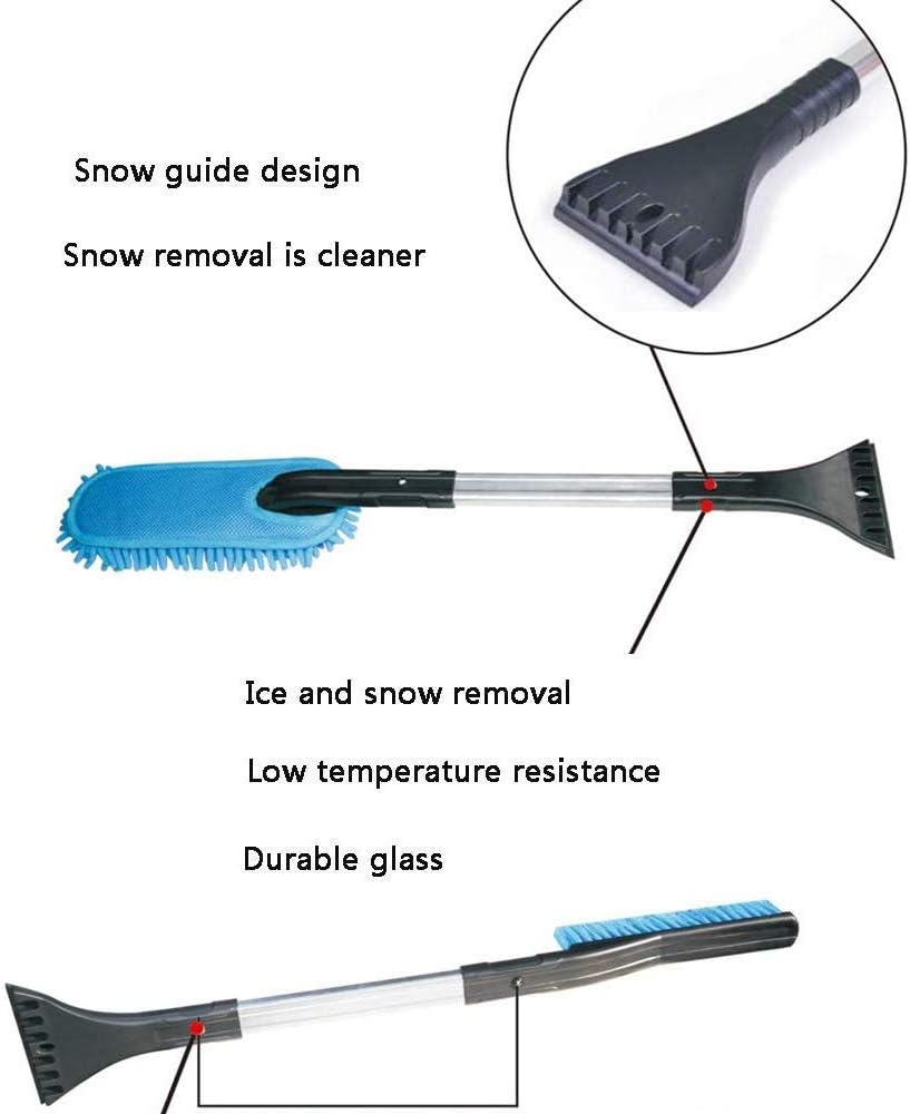 3-vienā sniega birste – Viegli noņem biezu ledu ar skrāpi, un blīvās birstes šķiedras ļauj viegli iztīrīt dziļu sniegu. Ar vadāmas sniega notekas dizainu sniega noņemšana ir vēl rūpīgāka. Viena birste ar trīs funkcijām – var izmantot kā ledus skrāpi, sniega lāpstu un automašīnas tīrīšanas birsti.